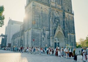 September 2025. Emsiges Treiben auf dem Domplatz Magdeburg – ca. 120 Schülerinnen und Schüler der 3. und 4. Klassen aus Schulen der Stadt Magdeburg versammeln sich zum Gang des Magdeburger Rechts. In farbenfrohen Kostümen, die mittelalterlicher Kleidung nachempfunden sind, hüpfen die Kinder durcheinander oder stehen in kleinen Grüppchen und diskutieren aufgeregt miteinander.
